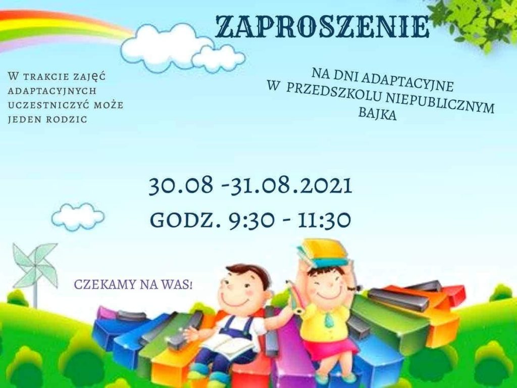 Drodzy Rodzice grupy żłobkowej oraz 3latków. Serdecznie zapraszamy na dni adaptacyjne 30-31.08.2021 w godzinach 9.30-11.30.